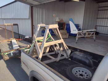 After a good hour-plus BS’ing about my panel and controls installs, Guy and I loaded up the right wing and hauled it to my hangar so it could join the left wing as they both await the delivery of the fuselage…