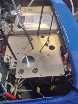 Here’s a current shot of the panel with mostly the wires and cables from the aft end of the bird all spilling out through the HXr EFIS mounting hole.
