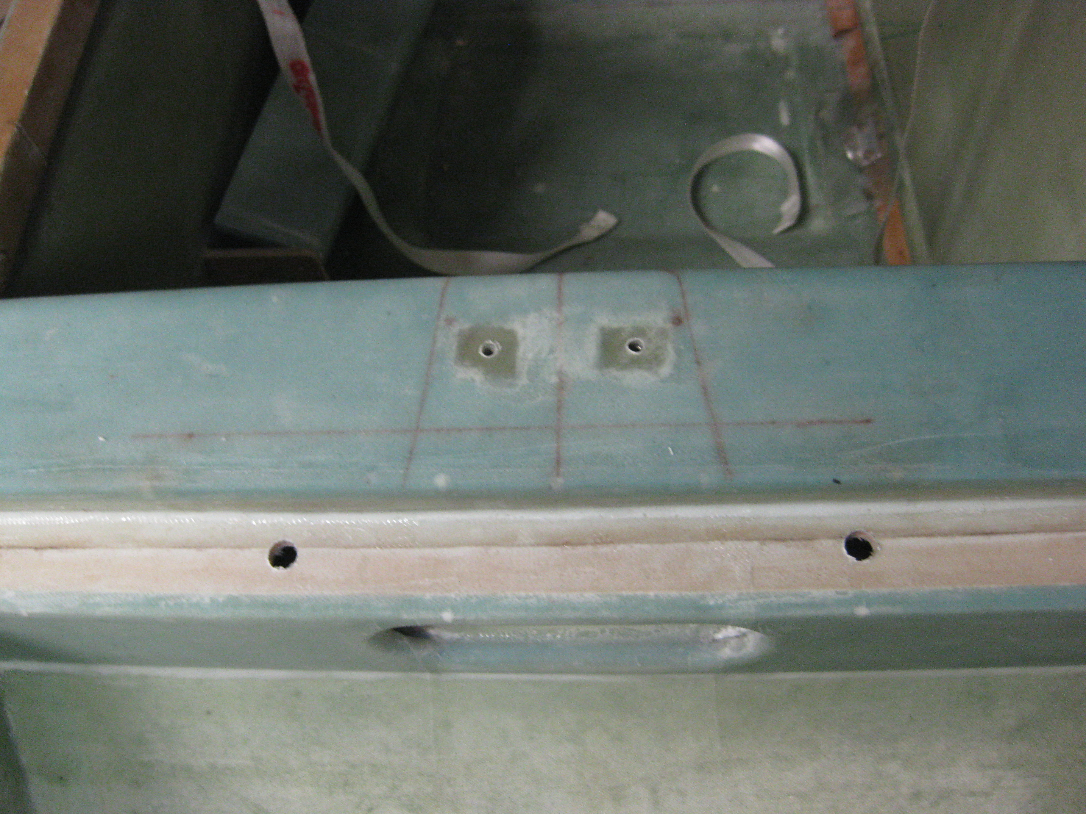 Holes drilled for seatbelt attach clearance Published 16 April, 2015 at 3648 × 2736 in Chapter 10 – Workbench Prep