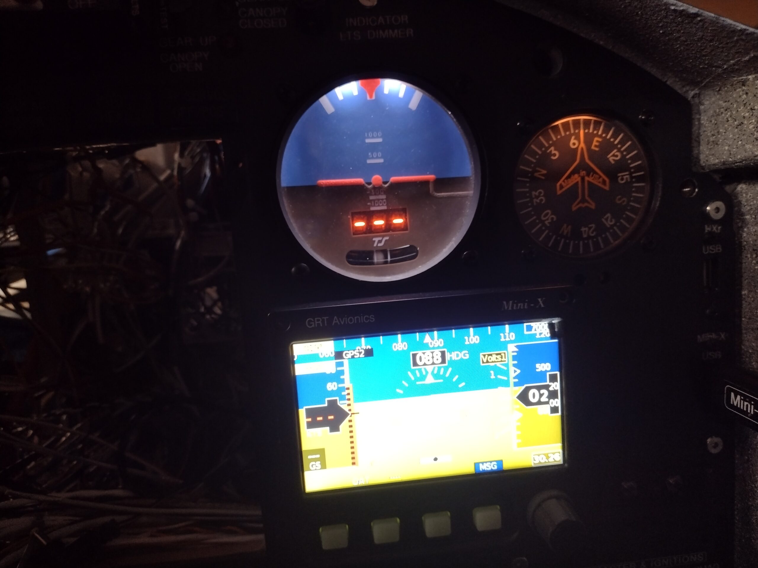 Panel lights/dimmer test on ADI & Vertical Card Compass Published 27 March, 2026 at 2560 × 1920 in Chapter 13/22 – Pitot-static start