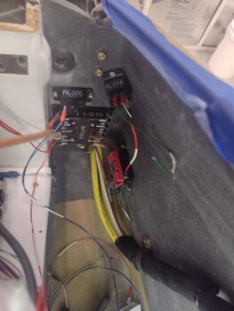 My last task of the evening, which should have taken half an hour tops, was installing the battery bus, the mini ANL-15 fuse, the RL005 heated pitot tube relay and the RL018 relay that connects the E-Bus to the battery (unswitched) side of the battery contactor AFTER the SD-8 backup alternator is online and the main alternator is offline (and the main bus too).