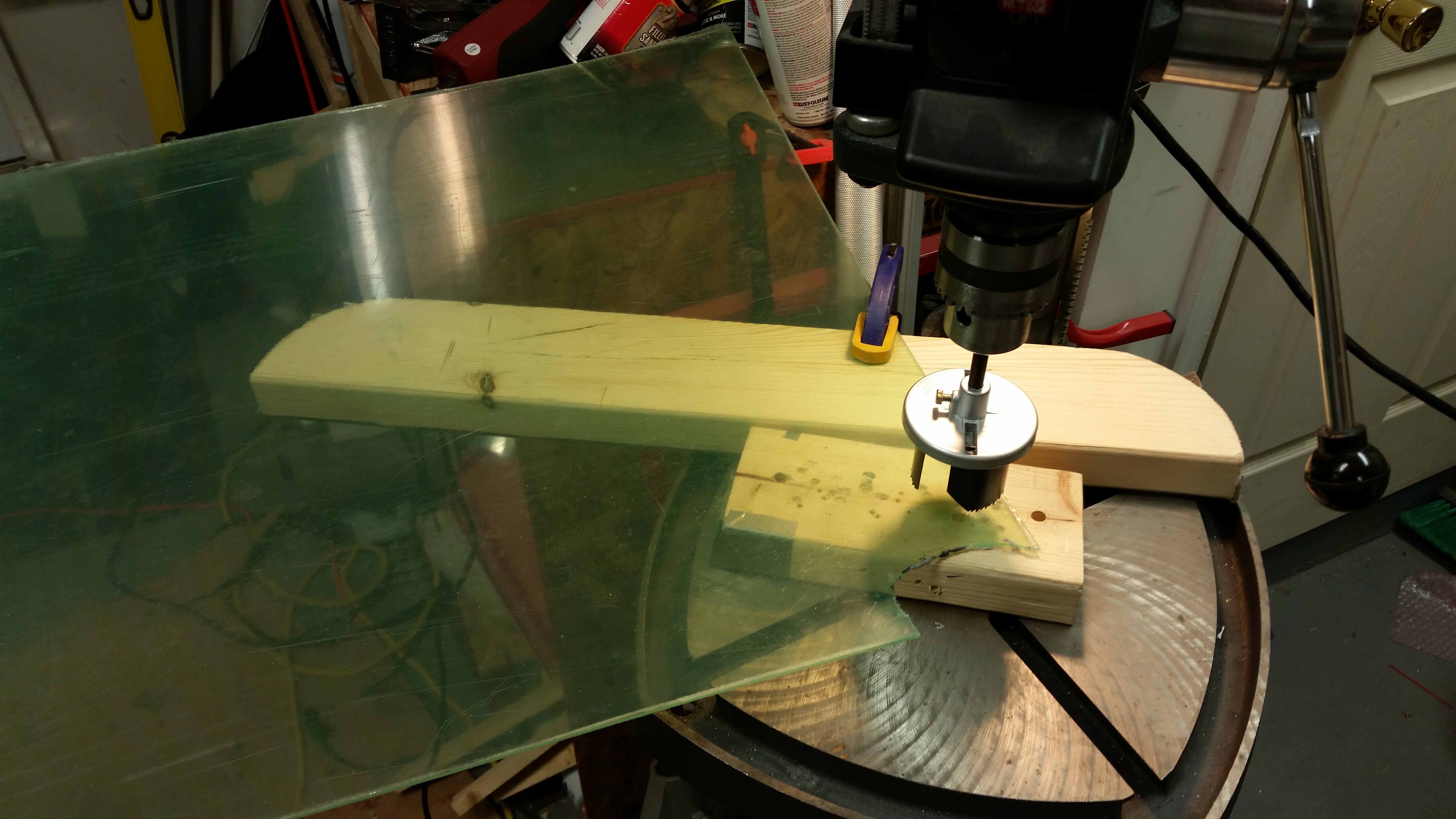 Trying modified hole cutter to cut taxi light lens Published 25 January, 2016 at 5312 × 2988 in Chapter 13 – Taxi Light Install