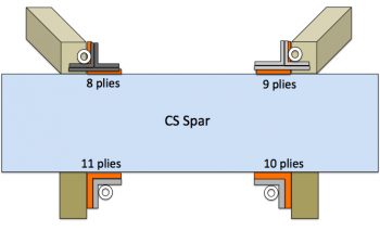 I should say that I’m really happy with hitting the CS Spar’s embedded hard points. I did very slightly cheat on the front bolts and moved them aft around 0.070″ to 0.1″ to ensure they were on the flat part of the spar (both top and bottom on the front of the CS Spar has an angled corner). This also helped ensure that I could fit a AN970-4 wide area washer in these locations as well.