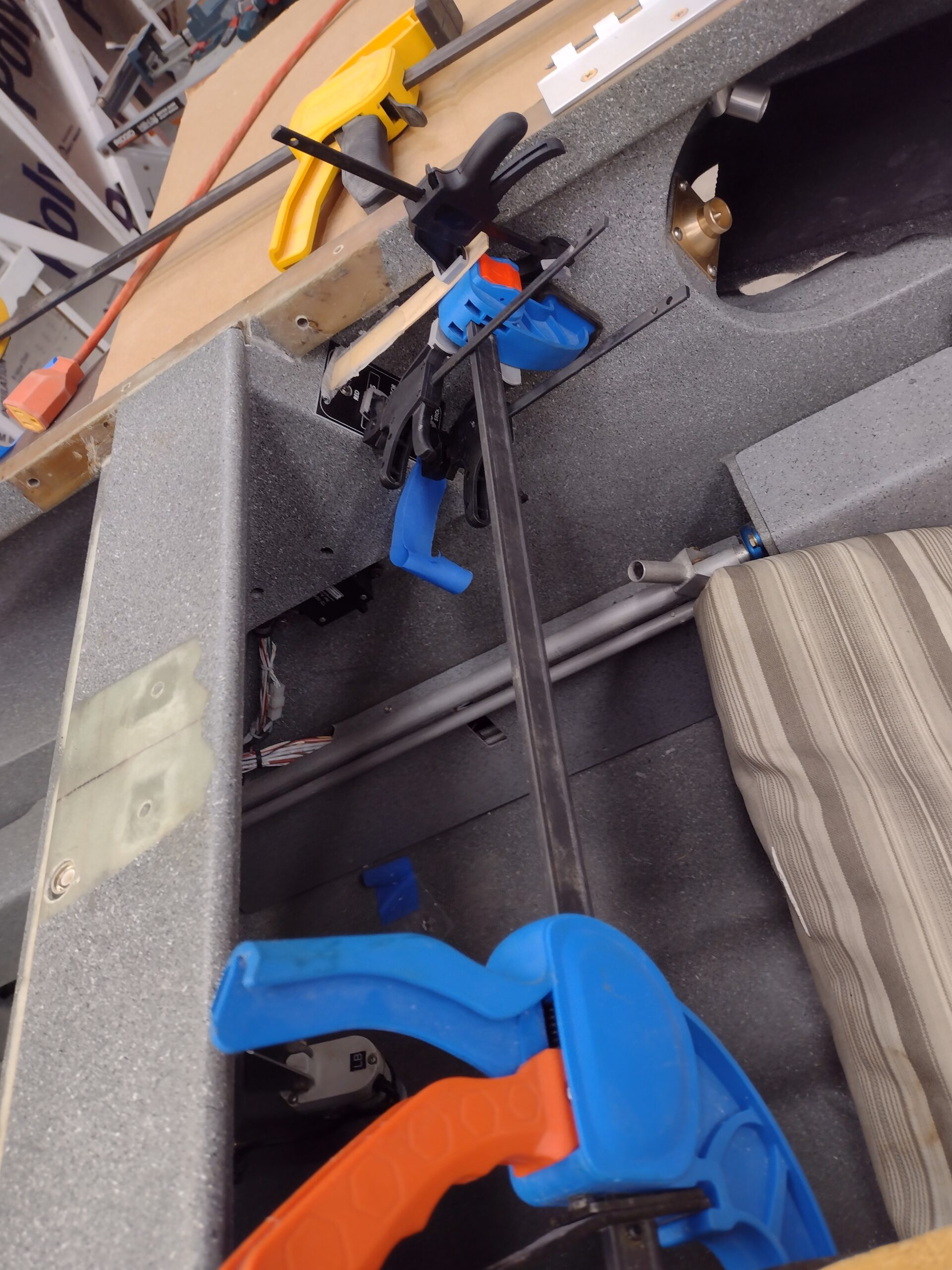 GIB light switch placard RTV’d & clamped in place Published 18 March, 2023 at 1920 × 2560 in Chapter 16/22/24 – Cabin Antics