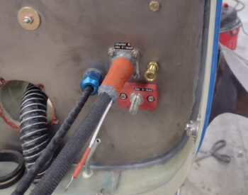 I then slid a piece of orange fire sleeve over the stainless steel pass-thru extending out from the firewall, after I slathered up the inside with gray RTV. I then added a Tefzel hi-temp zip tie (not in pic) to secure it even more.