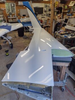 Starting off, here we have the painted left wing with all the protective tape removed from the winglet, wing root, etc. Also, note the Thermo-Tec heat shield applied inside the wing root.