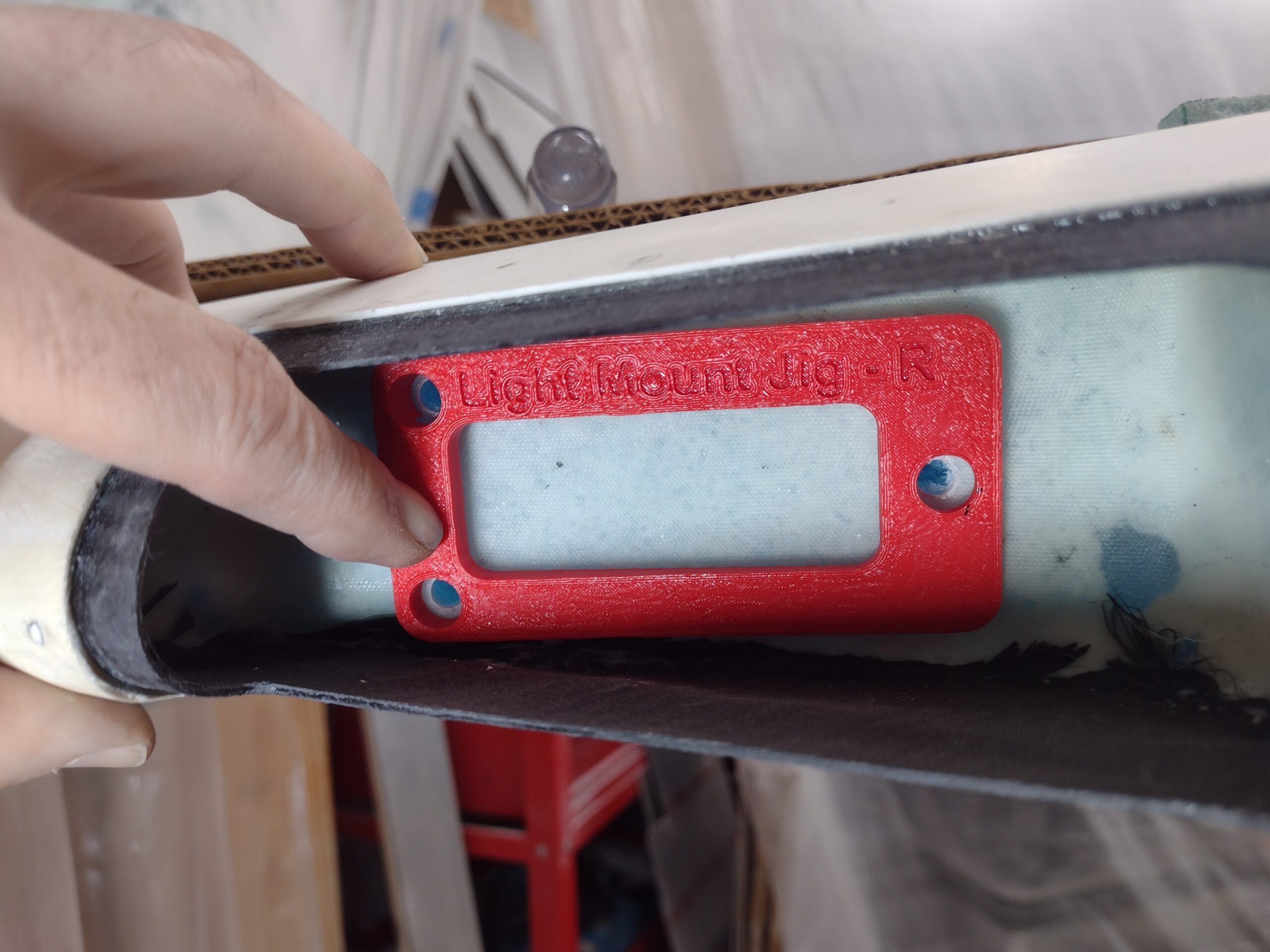 Drilling right wing LE light bracket standoff holes in aft wall Published 28 December, 2024 at 2560 × 1920 in Chapter 19/22 – Light standoffs installed