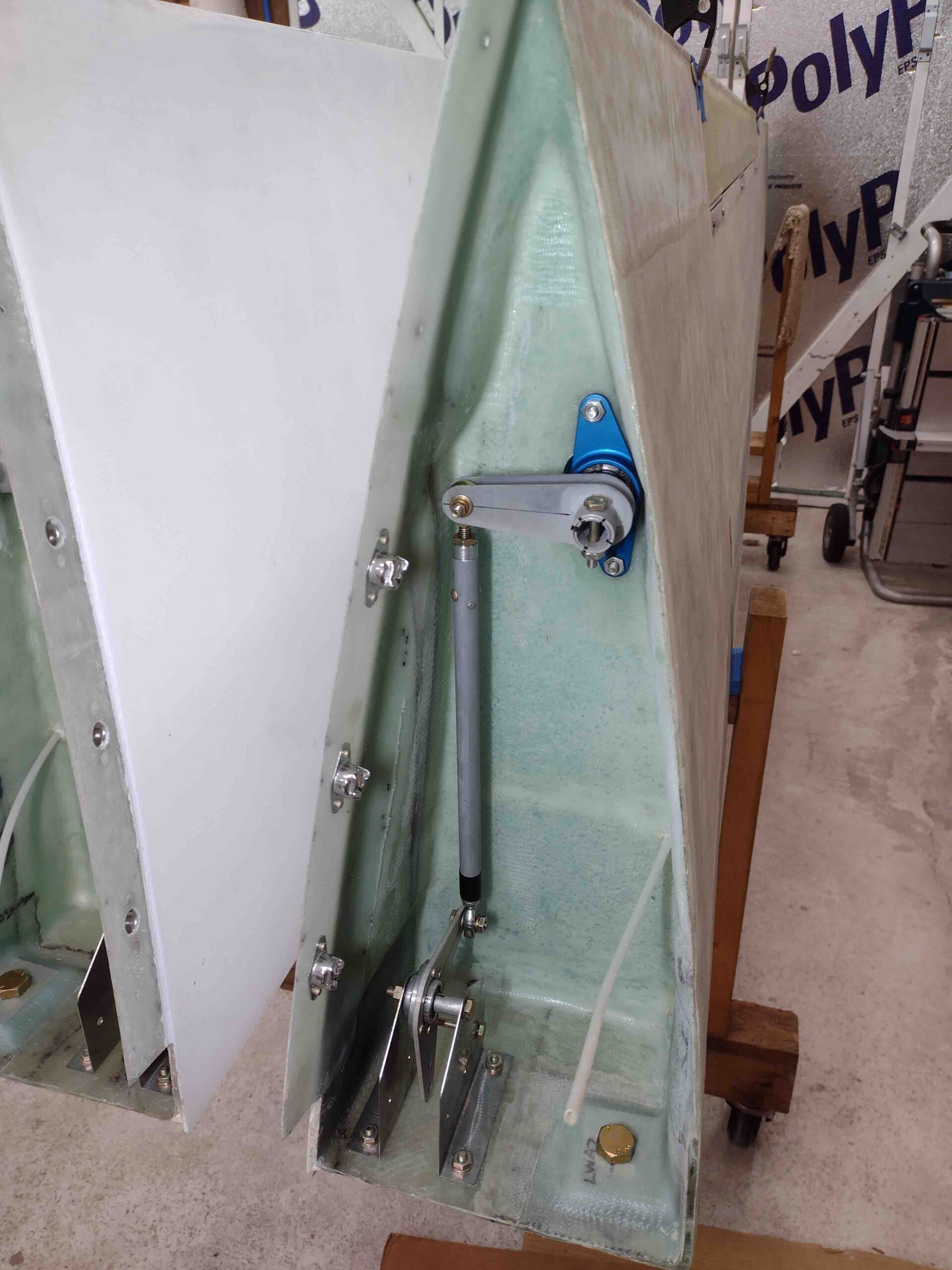 Left wing aileron control hardware installed Published 28 October, 2022 at 1920 × 2560 in Chapter 19 – Wings officially complete!