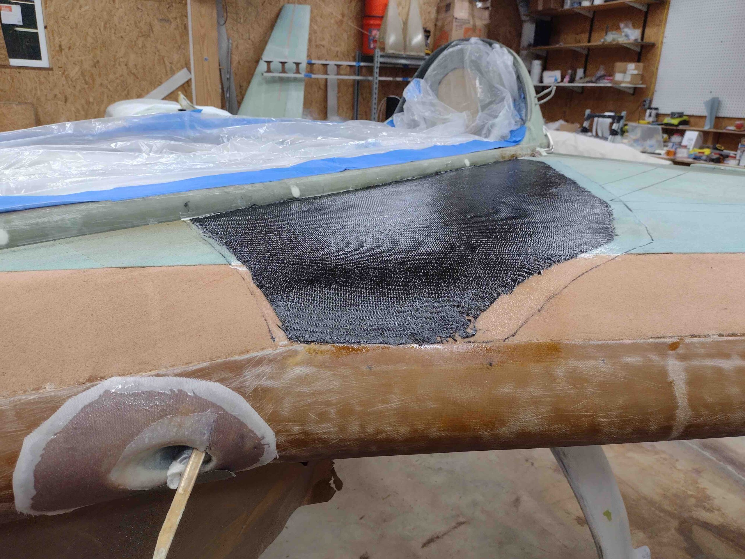 Left strake carbon fiber reinforcement ply laid up Published 5 November, 2022 at 2560 × 1920 in Chapter 20/21/22 – Left strake layups