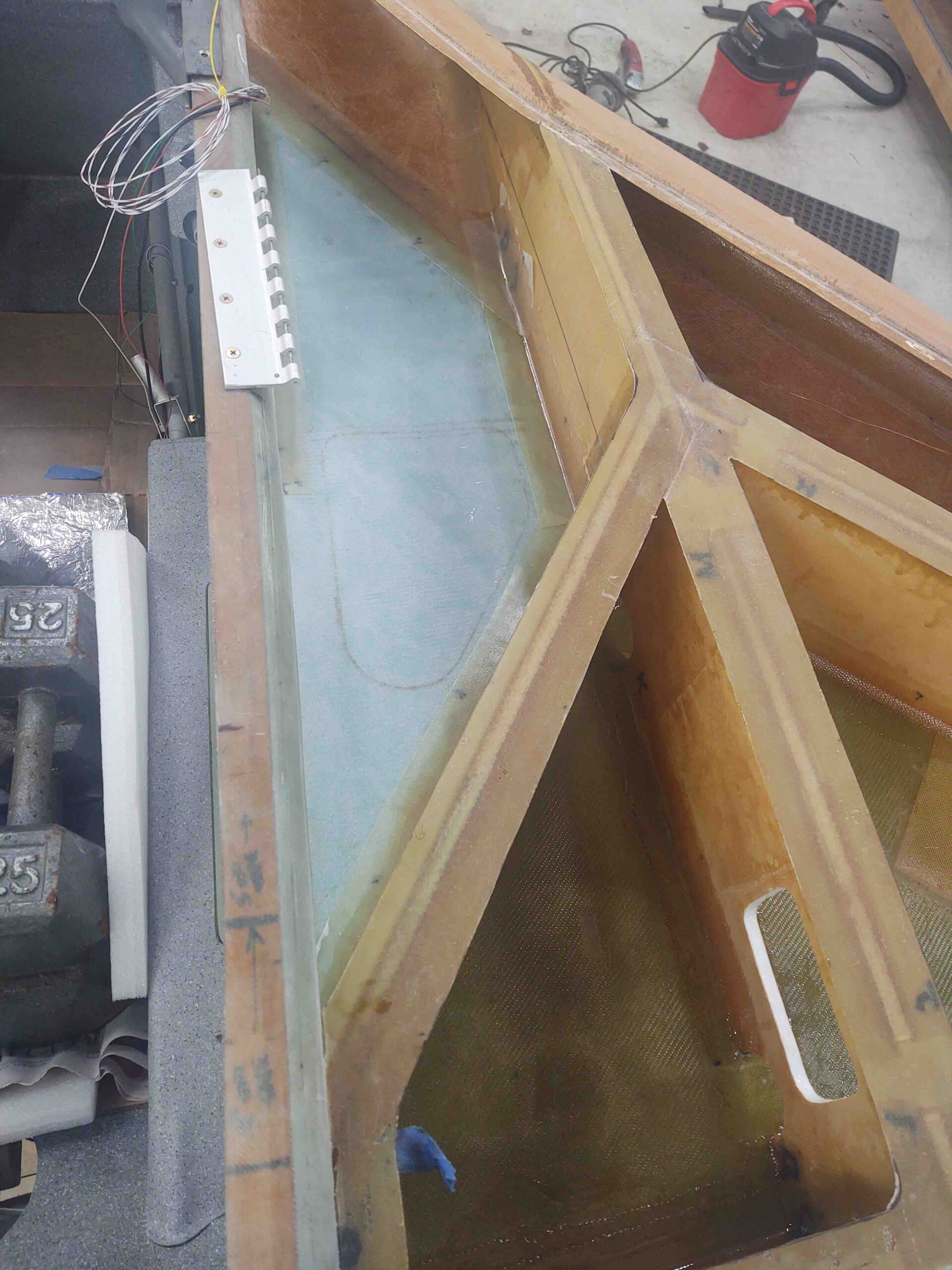 Right strake bottom skin floxed and glassed in place Published 27 March, 2021 at 1920 × 2560 in Chapter 21 – Right bottom skin install