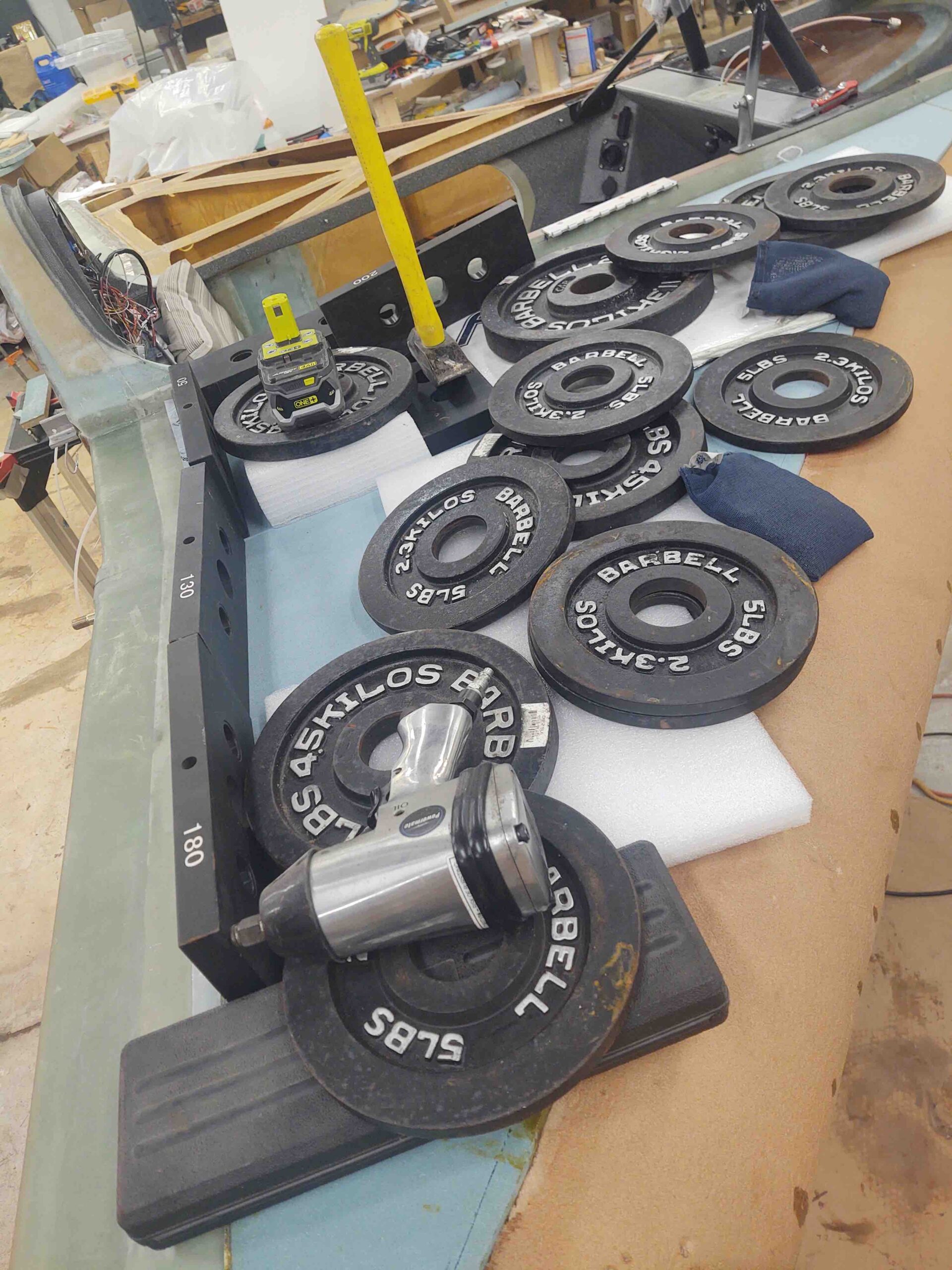 Right strake top skin weighed down for T-hat layups Published 20 March, 2021 at 1920 × 2560 in Chapter 21 – Strake T-hats
