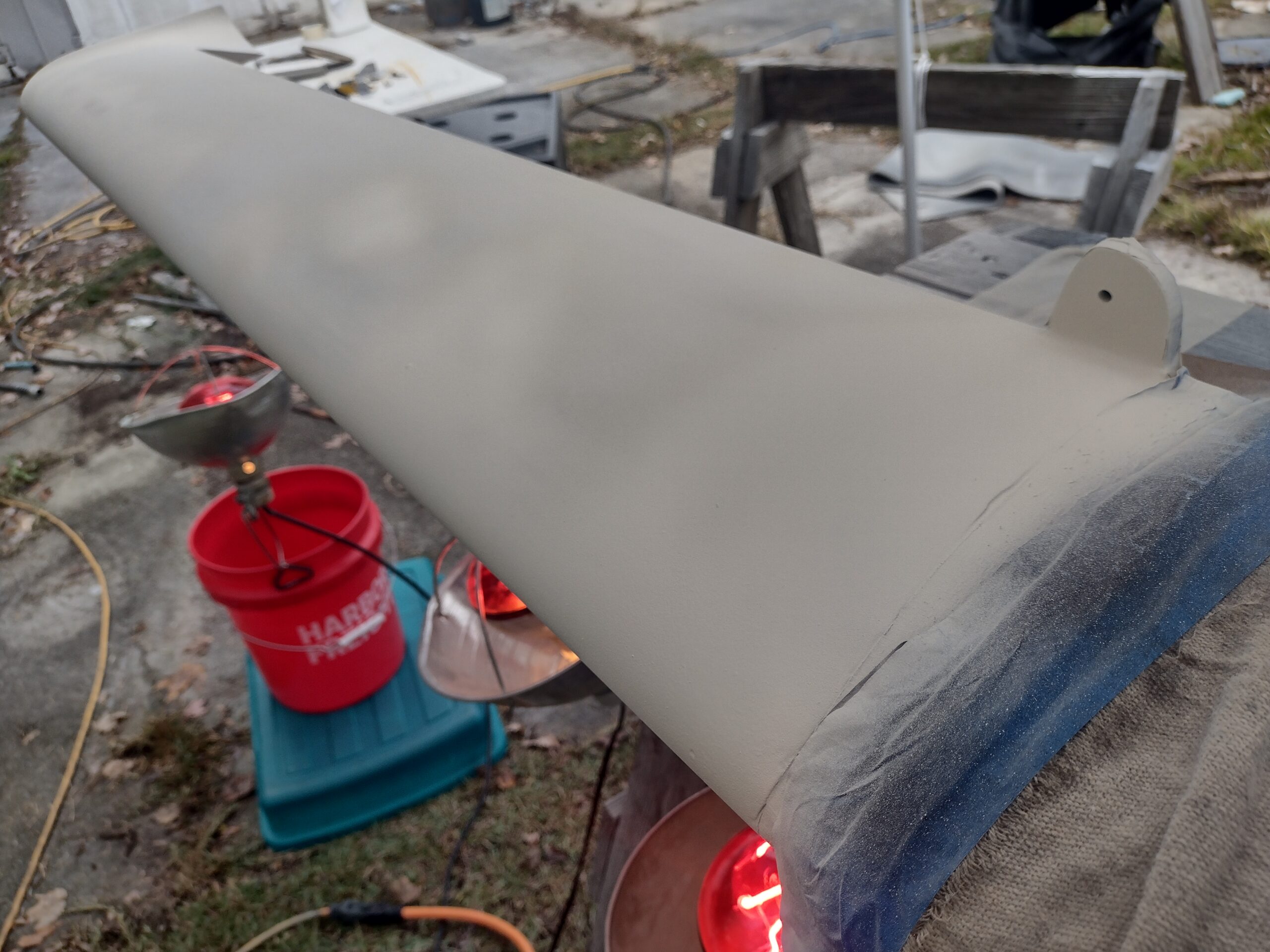 Canard top divots shot multiple coats of hi-build 2K primer Published 27 October, 2025 at 2560 × 1920 in Chapter 22/25 – Major painting complete!