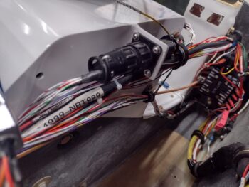 The simplest of the two bottom switches left was the IBBS Master power switch, so I targeted that. However, it had some required prerequisite tasks (par usual) before I could install it: I had to route the wires from the nose aft.