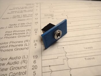 You may be asking why work on this non-critical audio jack now? Well, because it was a very close repeat task of what I did with the ELT connector, as well as the fact that I’m not kidding myself that getting the wired intercom D-Sub connector attached to the actual intercom unit is going to be a simple EZ-PZ task (it won’t be), so once that’s done I don’t want to have to undo anything for future mods. Thus, I’m wiring this up now and terminating the wires into the Intercom’s D-Sub connector. AKA: One shot, one kill.