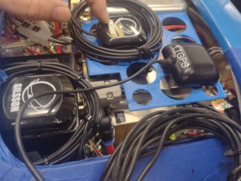 In the lower left corner is the Mini-X GPS puck mounted atop the TruTrak ADI.  Yes, it’s easier cable-wise to get it sitting nicely on the ADI moreso than the ADI’s own GPS puck, which is the farthest forward (to the right) in this pic.  The GPS puck at the top is the GRT AHRS, with the puck itself situated close to the inboard edge of the shelf plate with only the wrapped cable overlapping onto the AHRS (I confirmed with GRT that this is ok).