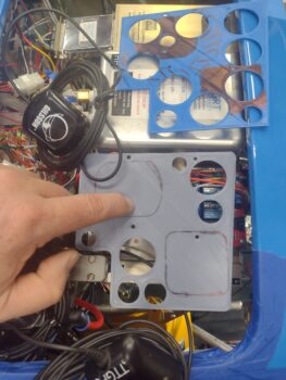 Now, that all being said, after the 4th iteration of this sleeve, and it fitting very well (there is nothing else holding the instrument in place at this point in this pic), I figured I should wire it up and test it out before I glue this sucker into place.  The control head (in the pic) tests out fine, but there is a bit more detailed test to do with the sensor, which is back by the GIB seat bulkhead.  Once (and if) that is good, I’ll install this unit with RTV.