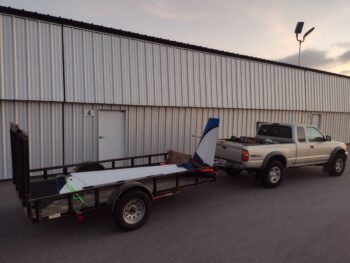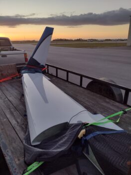 After a good hour-plus BS’ing about my panel and controls installs, Guy and I loaded up the right wing and hauled it to my hangar so it could join the left wing as they both await the delivery of the fuselage…