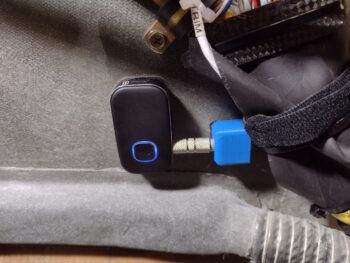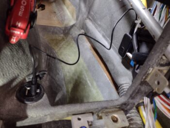 Finally, here is the recharge cord connected between the BlueTooth module and the USB charger (just forward of the pilot seat pad at the base of the center panel strut).