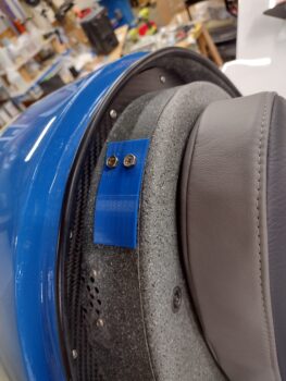 In addition, over the past few days I’ve been dialing in the initial configuration test plate for the top GIB headrest mount for yet another video camera (speaking of video cameras, I have not yet addressed nor repaired the dead video camera wire in the left strake).