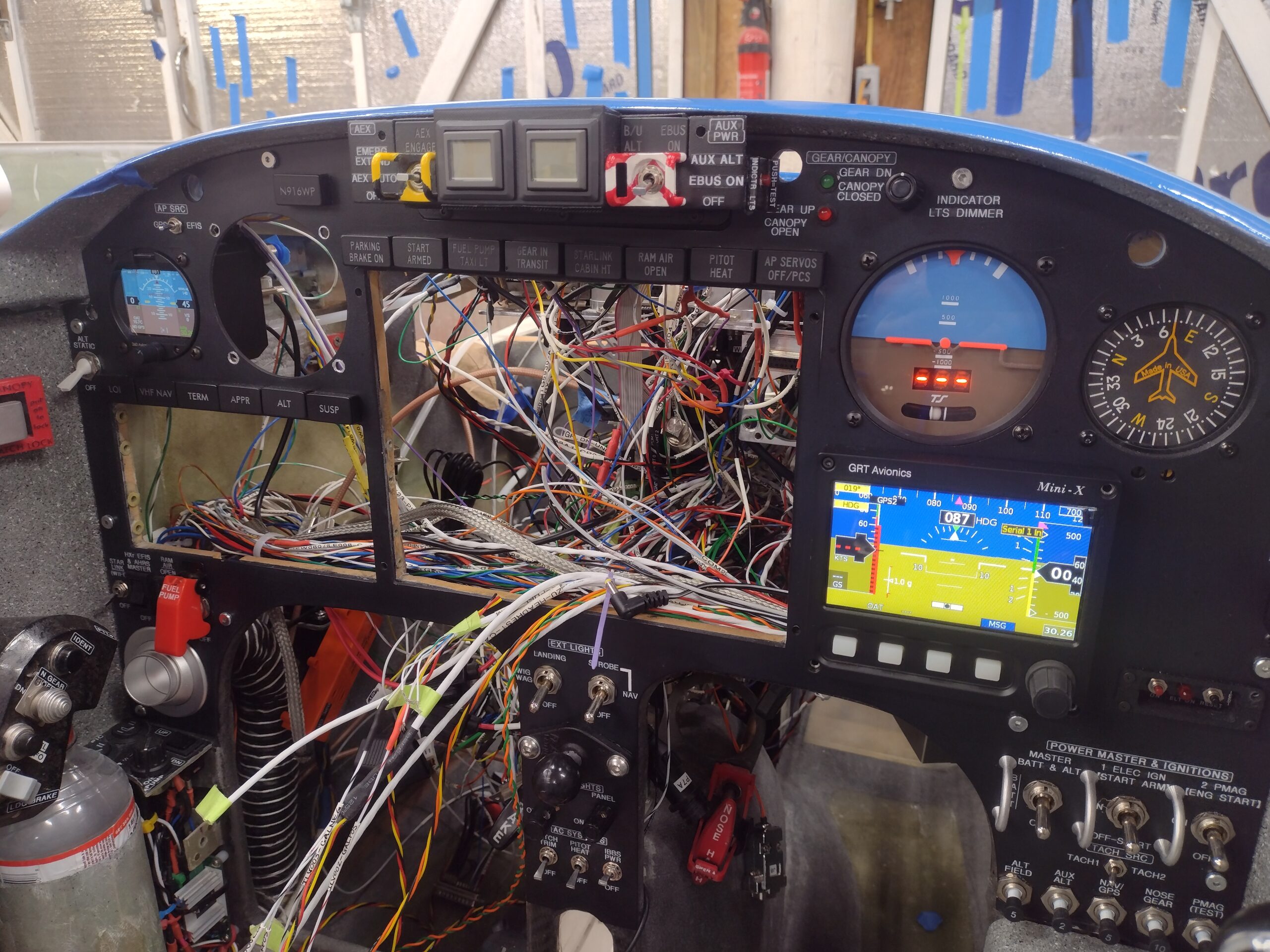 Panel: 2x EFIS + ADI power-up via IBBS test good! (note switches) Published 26 March, 2026 at 2560 × 1920 in Chapter 22 – Power up!