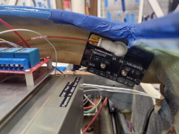 In sheer vanity to save the ‘unblemished’ appearance of F28’s front face, my initial plan was to embed RivNuts into the aft side of F28 to secure the X-Bus fuse panel. But alas, F28 is simply not thick enough to allow what I wanted to do. So in order to get this task done without waiting hours for a layup to cure with (possibly) fairly robust Clickbonds (much larger than the standard ones we use), I simply decided to use through-screws to mount the X-Bus fuse panel.
