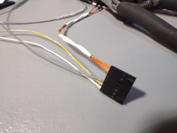 Here shown with the both sides of the connector terminated, wires in place. (Yes, I have a love-hate relationship with Mini-Molex connectors… what can I say?!)