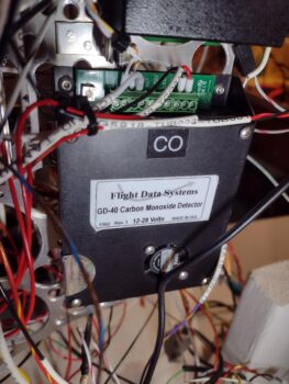 I then spent the next 45 minutes wiring up the GD-40 CO Detector. Here you can see from left-to-right are the two RX-232 wires that feed the HXr warning/alarm data, the audio wire to the audio mixer, and on the far right end are ground and power. EZ-PZ!
