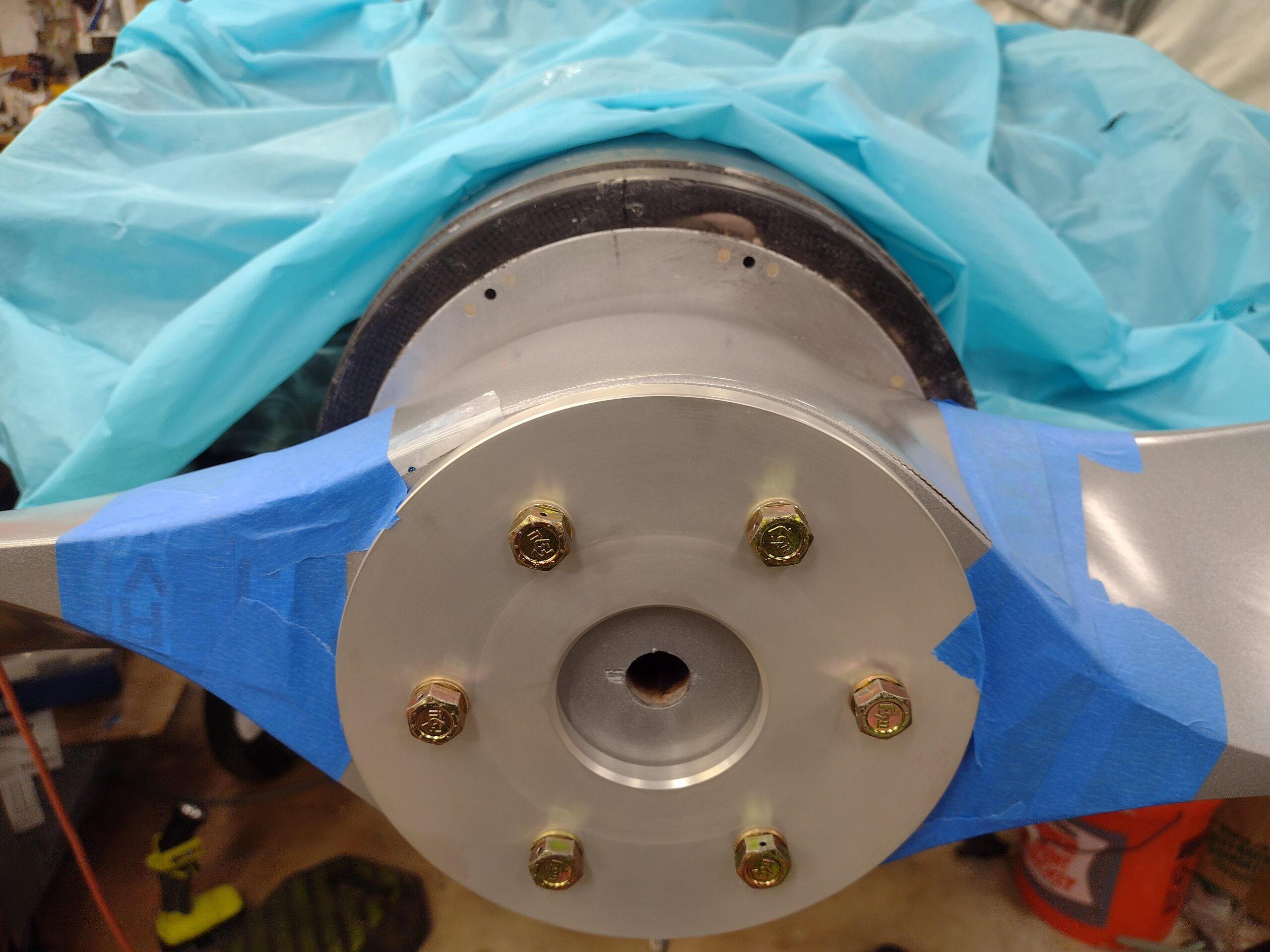 Taping up prop for spinner install (note delam) Published 14 October, 2024 at 2560 × 1920 in Chapter 23/25 – More oil check door