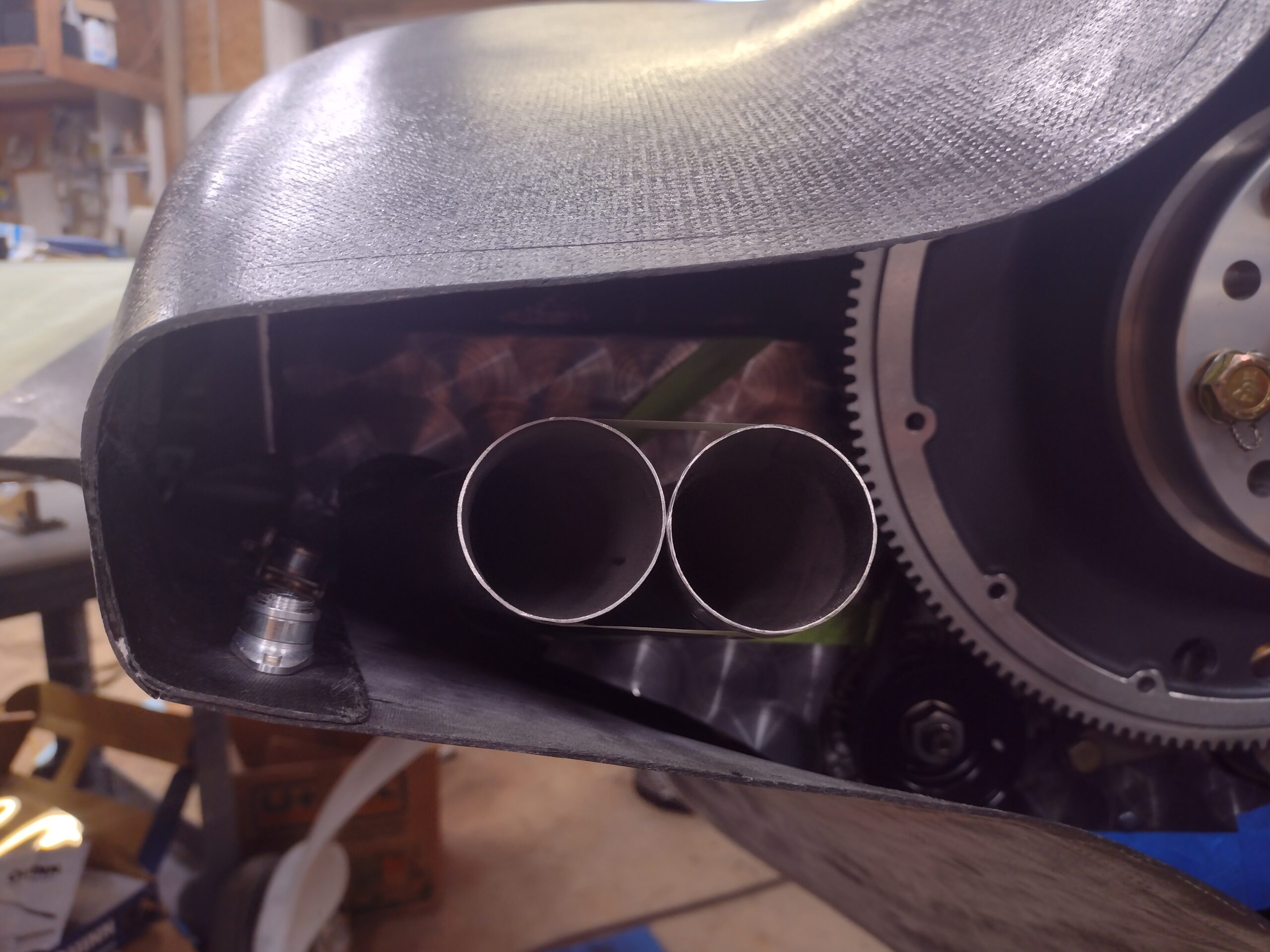 General view of exhaust pipe positioning left side cowl Published 9 July, 2024 at 2560 × 1920 in Chapter 23 – Left exhaust pipe tab