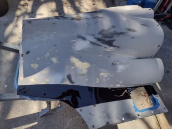 After a thorough cleaning/degreasing and another 30 minute minimum dry time for that, I shot a good coat of sealer on it to not only seal the unprimered spots, but also to check for any irregularities that would need to be attended to… thankfully there were none.