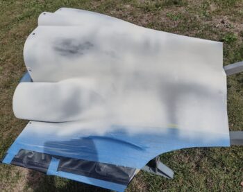 I let the 2K primer cure for its minimum 4 hours before DRY sanding it with 320 and 400 grit sandpaper. This took a good majority of the 2K primer off the bottom cowl (sorry, no pics) with a lot of bare carbon fiber and micro showing through.