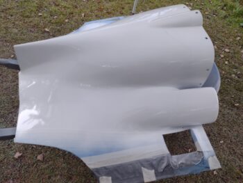 I then shot a good bit of the bottom cowling middle area spots with hi-build 2K primer. Some problem areas got 4 coats to ensure a smooth fill and transition after sanding.