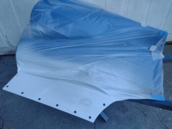 In addition, I had done a final sanding with 320 grit on the elevator weights’ anti-ice shields, cleaned them and shot them with white paint as well.