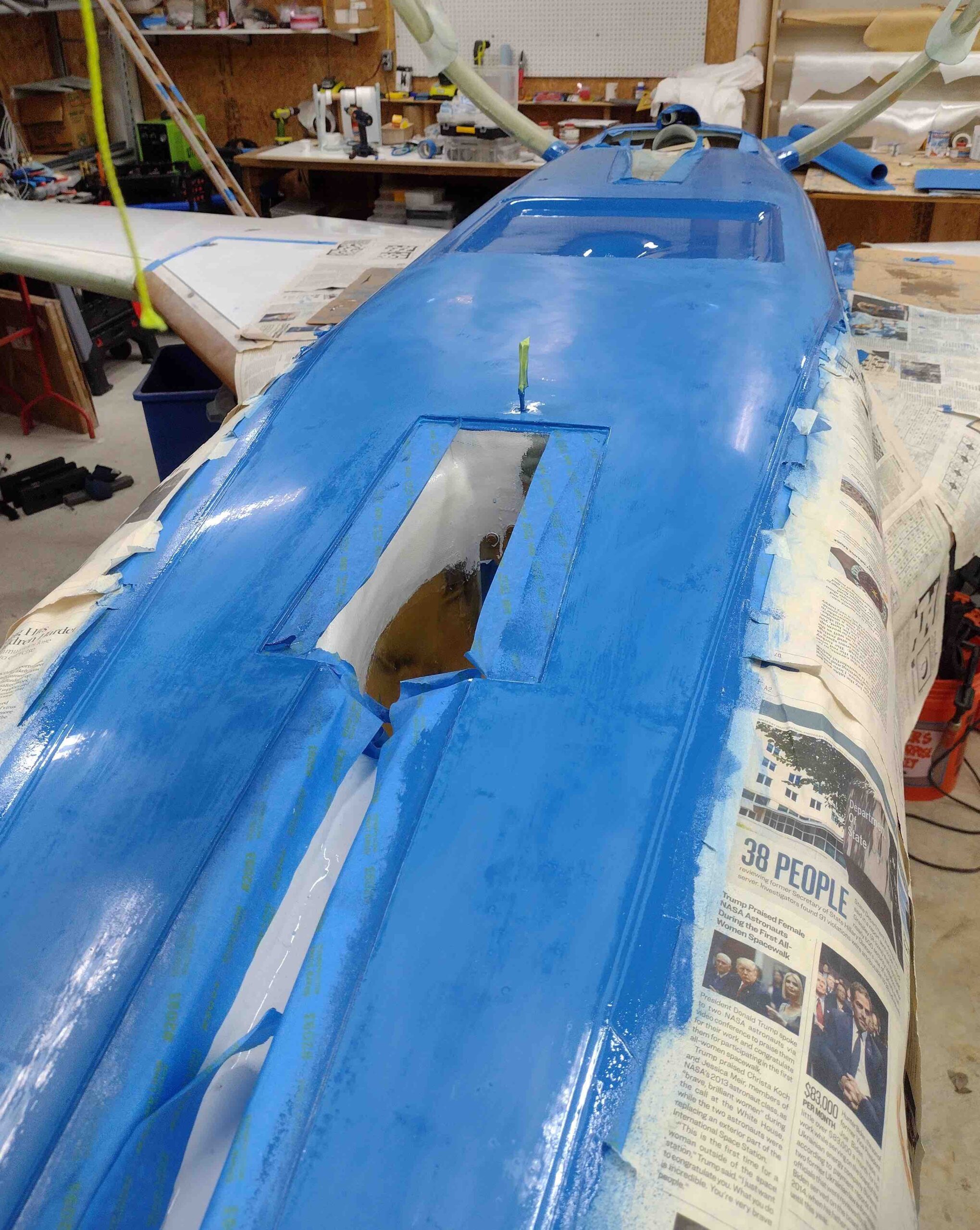 Sanding bottom fuselage for paint Published 4 December, 2021 at 2039 × 2560 in Chapter 25 – Final blue paint sanding