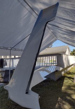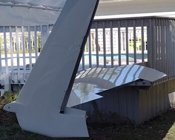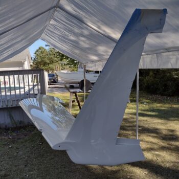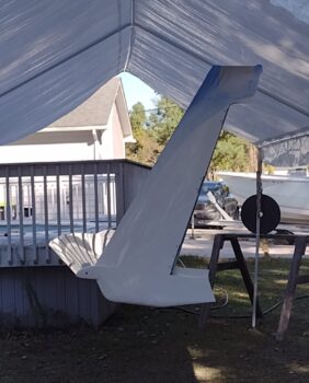 Now, when I painted the right wing I also painted the outboard sides of the rudders. In the last couple of days I painted the inboard sides of the rudders as well. Unfortunately the inboard right rudder surface had visible pockmarks after the second coat. I let it cure, sanded it and reshot the white paint this afternoon. Although I didn’t grab a pic of it, it turned out much better than before and very acceptable.