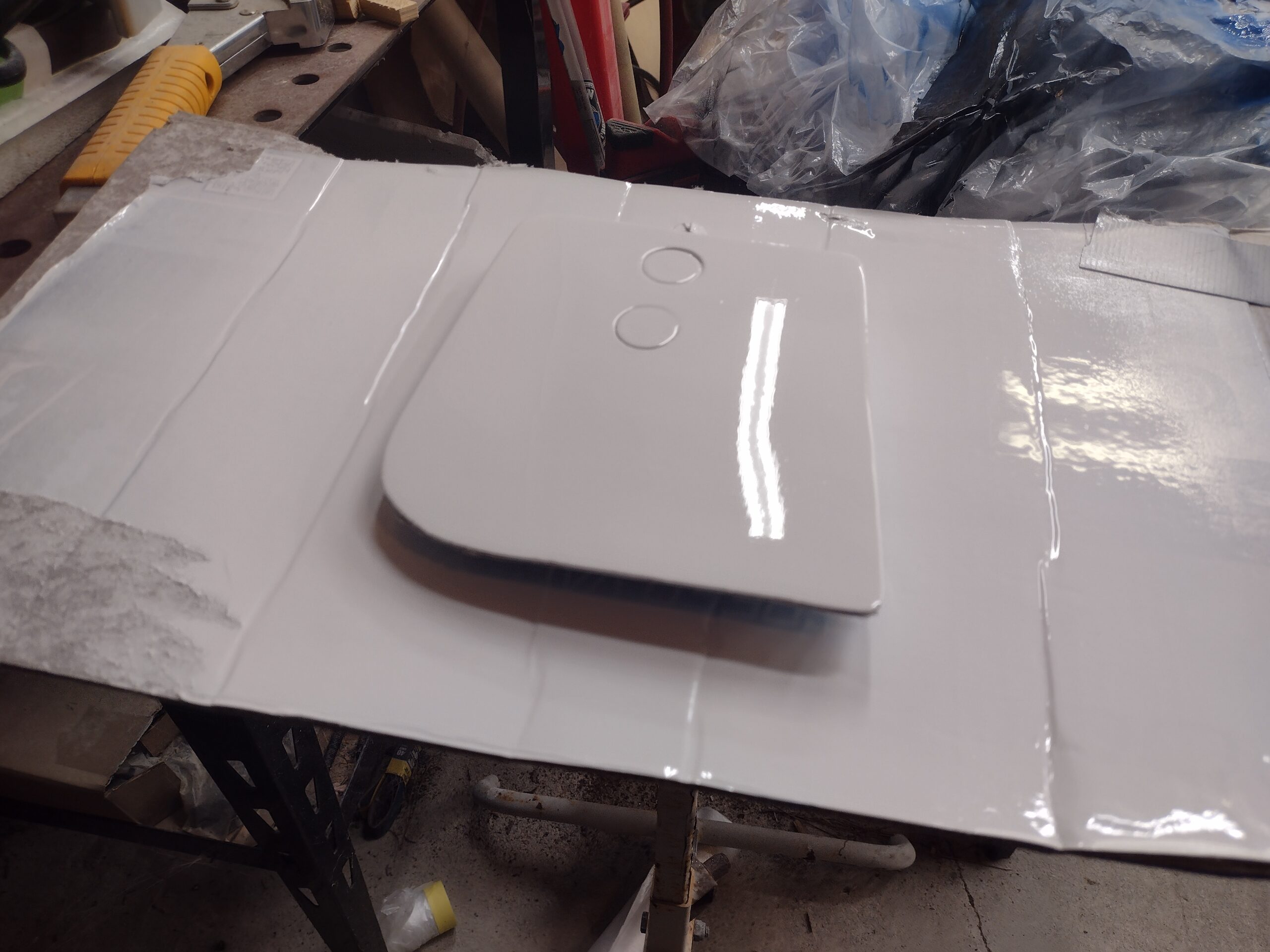 Left strake hatch door shot in white paint Published 25 September, 2025 at 2560 × 1920 in Chapter 25 – Paint winding down