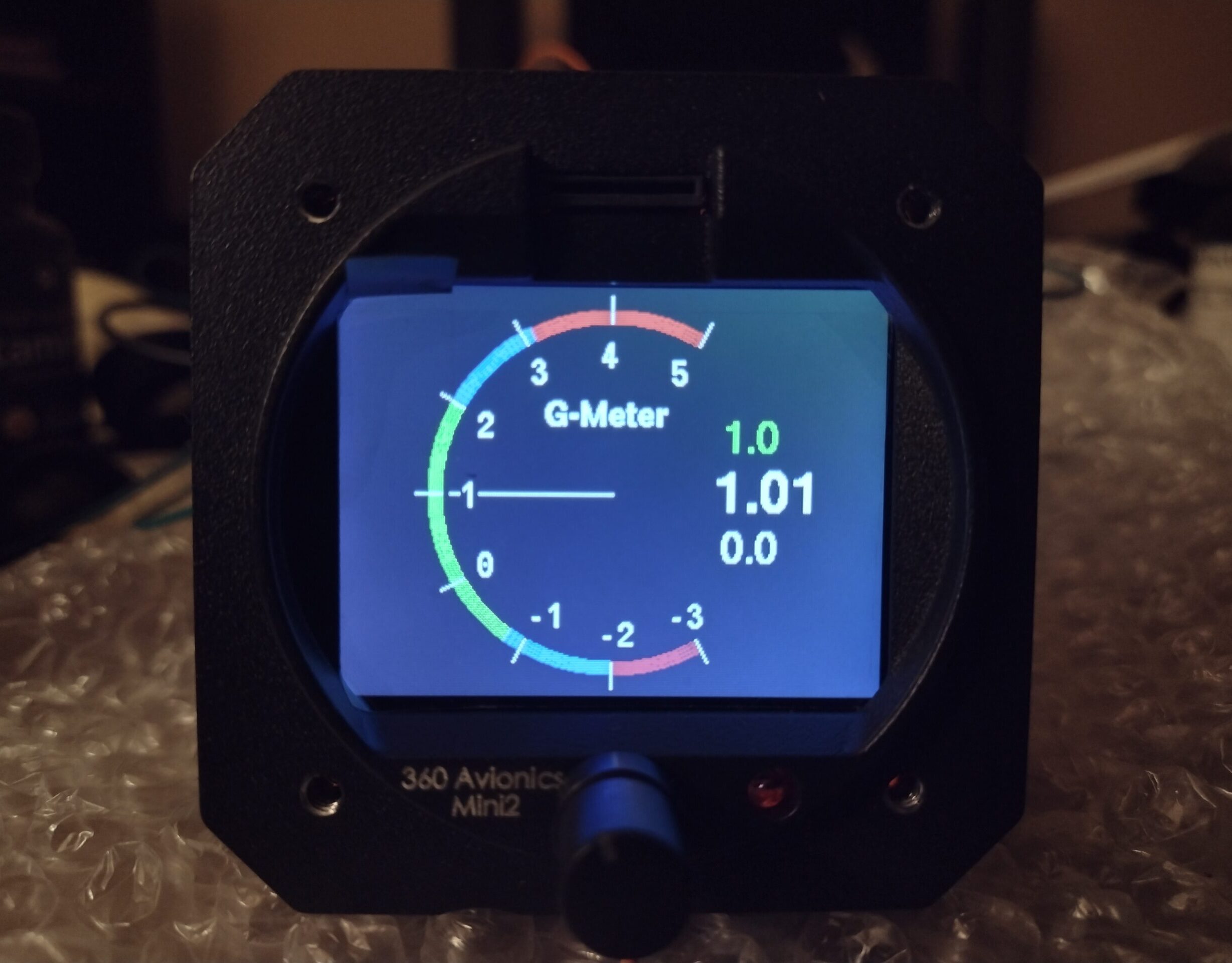 MiniUni2 EFIS G-meter screen Published 14 February, 2024 at 2457 × 1920 in Chapter 3/22 – New backup EFIS/clock!