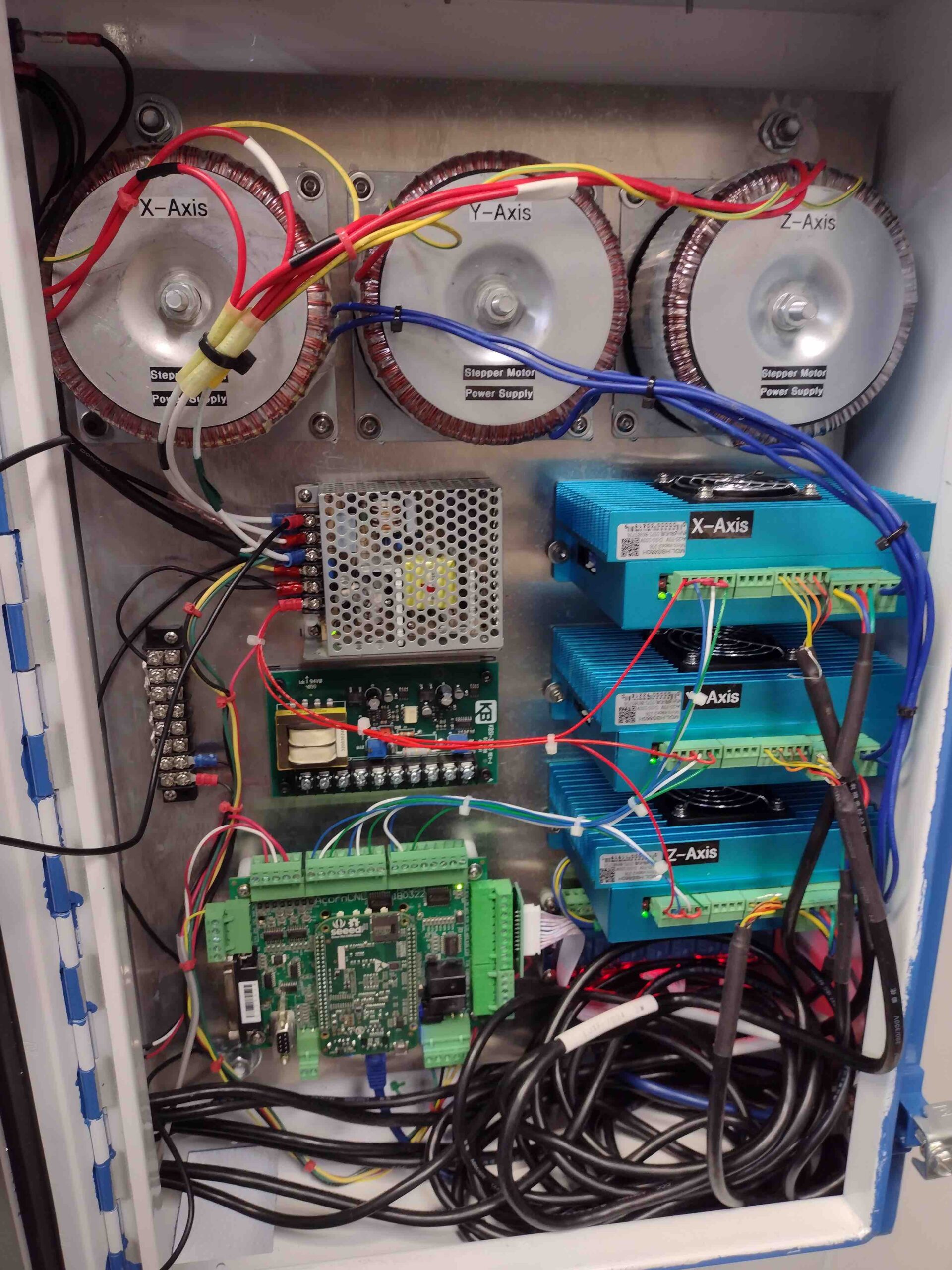 Mill Acorn CNC power up, with motor connections Published 9 January, 2022 at 1920 × 2560 in Chapter 3 – CNC control box installed