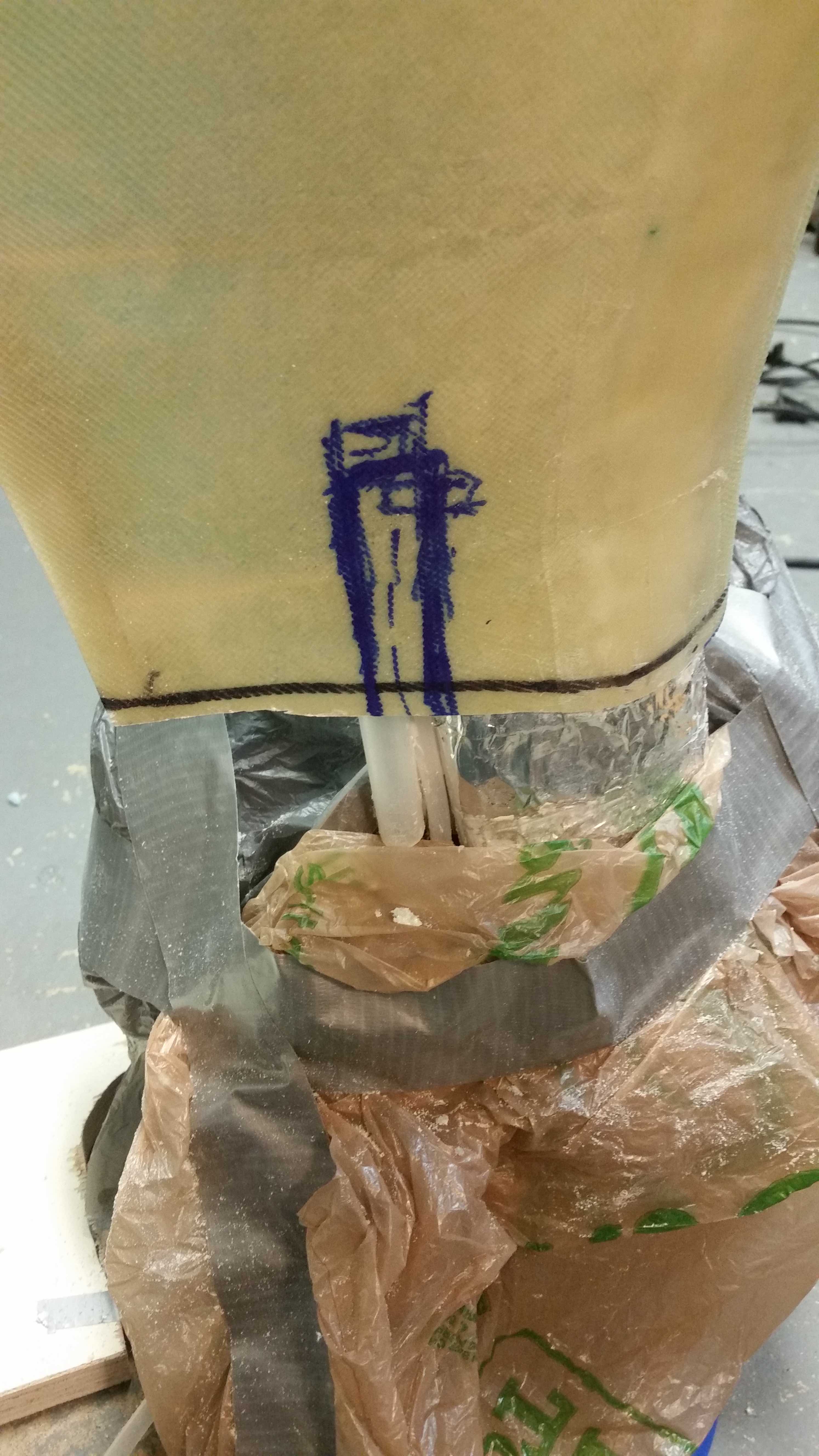Left gear fairing marked for brake line access Published 5 April, 2018 at 2988 × 5312 in Chapter 9 – Final Brake Line install
