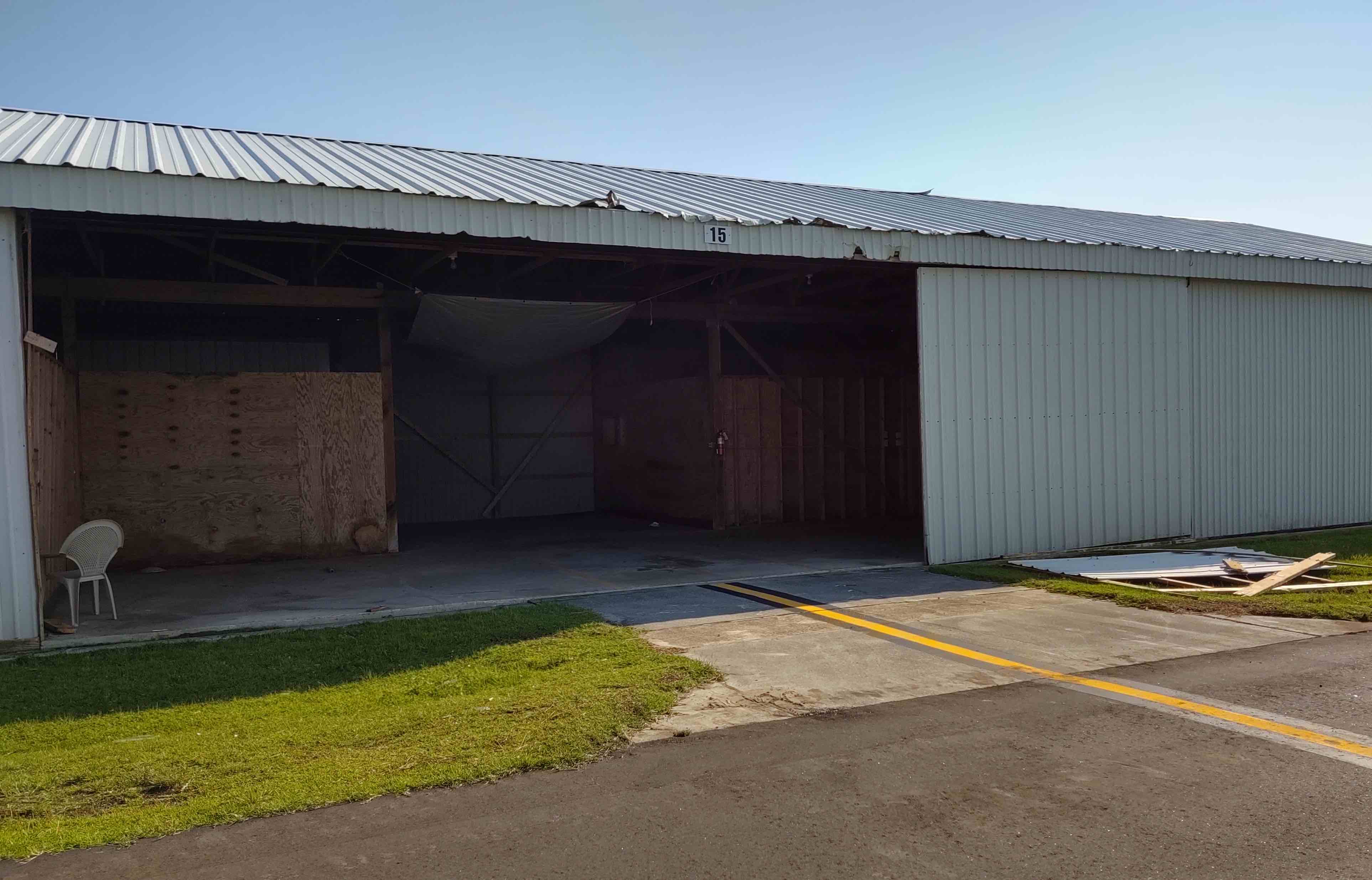 Doors ripped off aft-side adjoining hangar Published 20 October, 2019 at 3851 × 2471 in Doors ripped off aft-side adjoining hangar