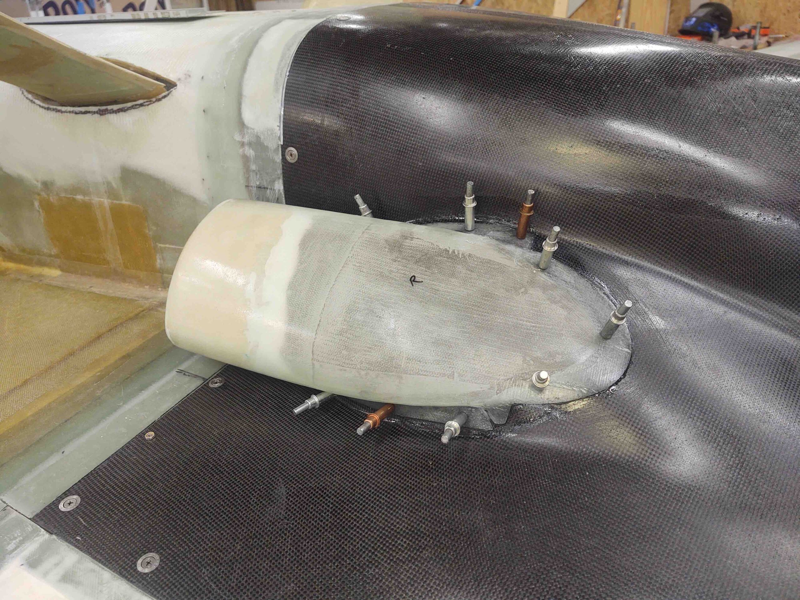 Cowling right armpit air scoop floxed & clecoed in place Published 24 June, 2021 at 2560 × 1920 in Cowling right armpit air scoop floxed & clecoed in place