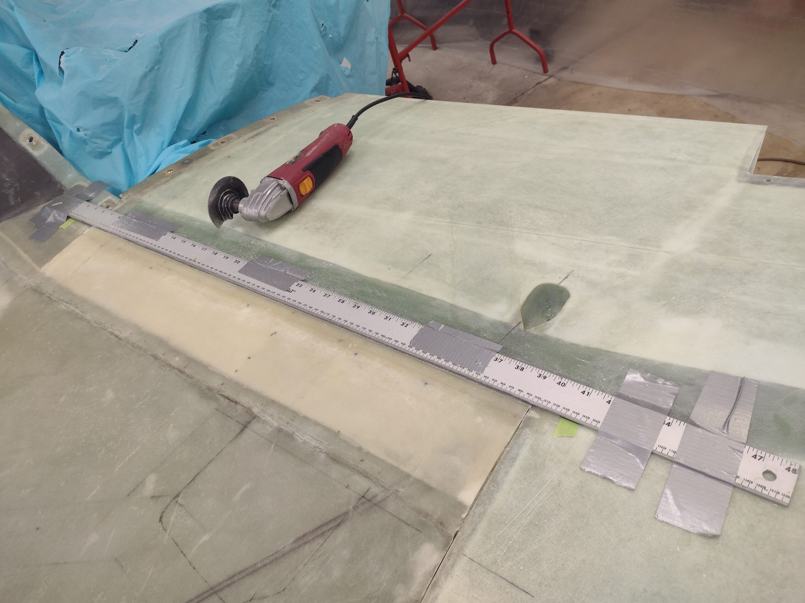 Left wing-to-strake junction 1-ply BID layup cut Published 7 November, 2024 at 2560 × 1920 in Left wing-to-strake junction 1-ply BID layup cut
