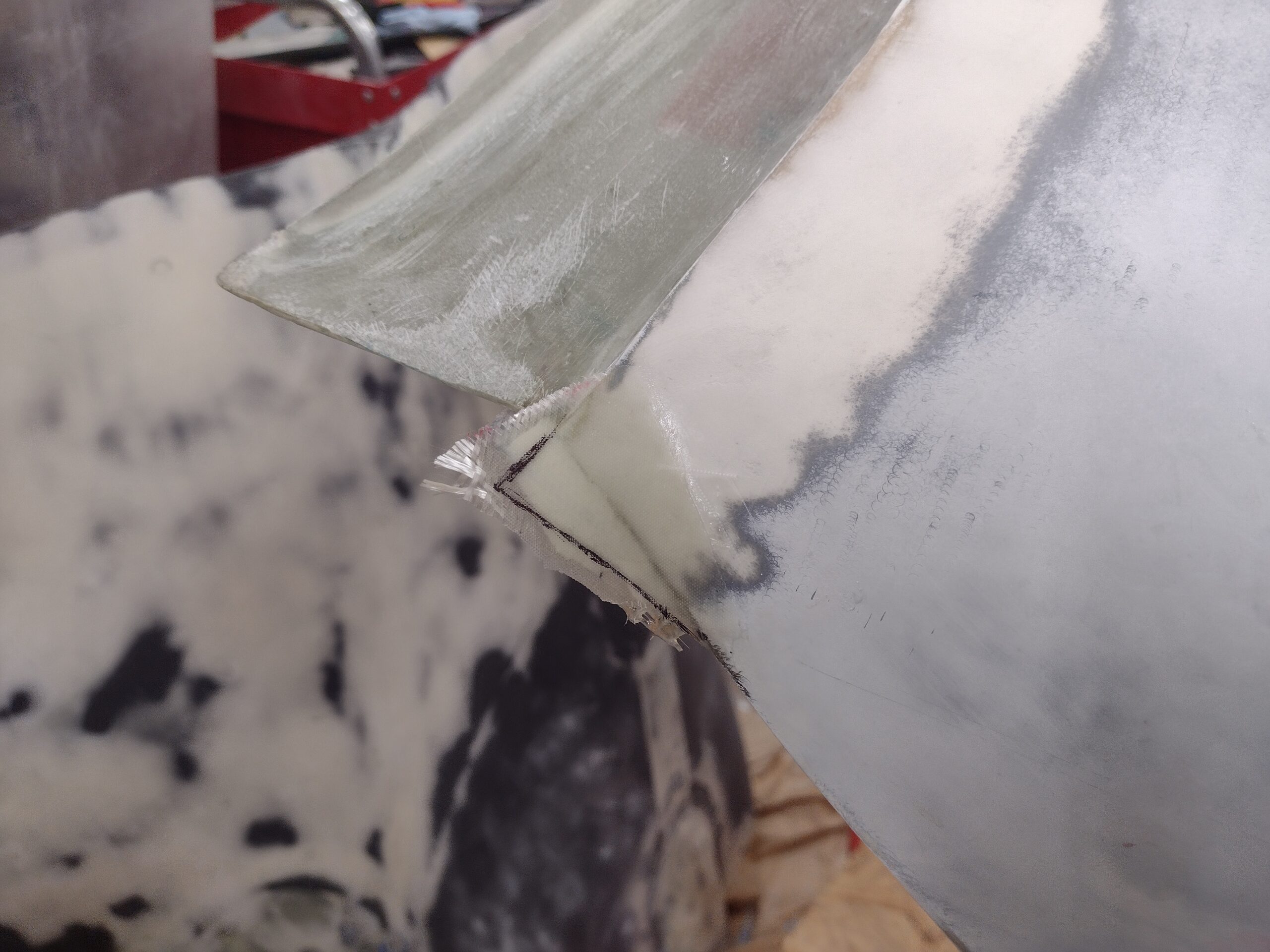 Aft nose/avionics cover: aft right corner glass fill cut mark Published 29 March, 2025 at 2560 × 1920 in Aft nose/avionics cover: aft right corner glass fill cut mark