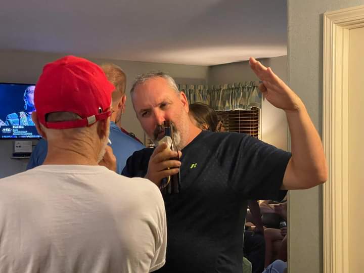 Me telling my “shooting down a Mig-23” war story to Nick U. Published 26 September, 2023 at 720 × 540 in Rough River 2023