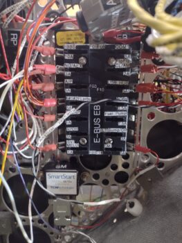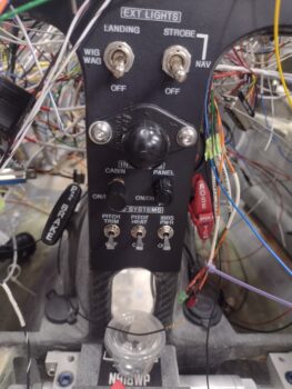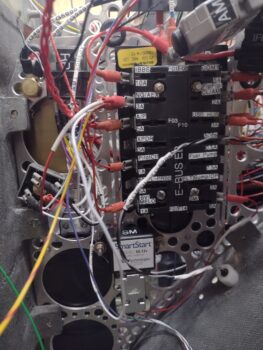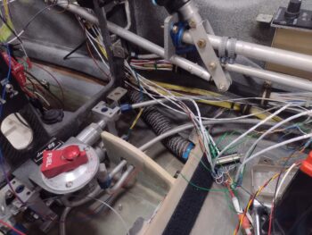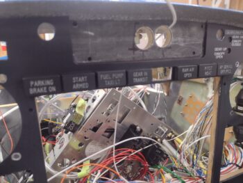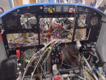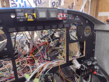 Here’s a current shot of the panel with mostly the wires and cables from the aft end of the bird all spilling out through the HXr EFIS mounting hole.