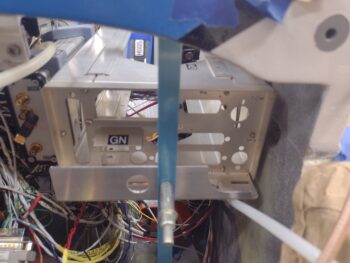 I’ll also note that the antennas mounted on the receiver’s forward end (pic 2) are the ones that will have to be removed and remotely mounted under the very aft end of the left pilot armrest. Inside the armrest of course. That gets these antennas the required >4′ away from the transponder antenna inside the forward NG30 bracket uprights in the nose.